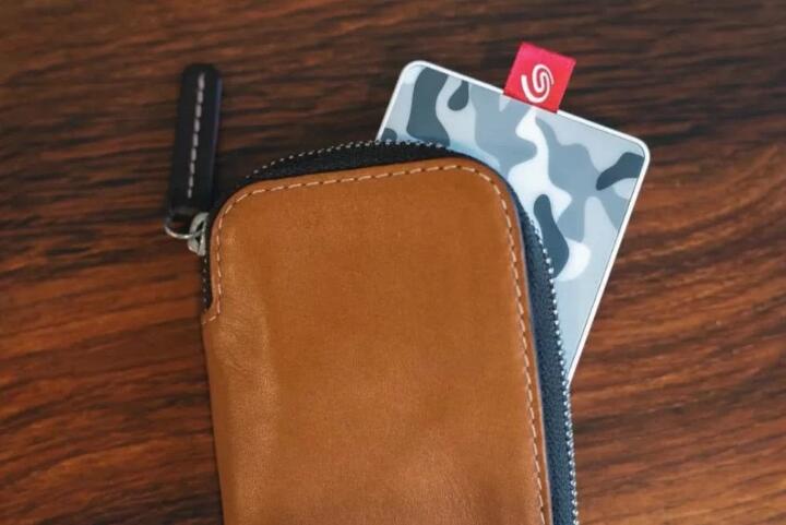 首先,这款移动固态硬盘的体积非常迷你,比我的手掌都小了不少。我拿出自己之前购买的一块LaCie×PorscheDesign移动硬盘对比了一下,希捷颜系列ONETOUCHSSD移动固态硬盘的体积差不多只有Lacie的1/4,连我的卡包都可以轻松塞入,更不用说口袋了。同时,这款移动固态硬盘的重量也非常轻,揣在兜里几乎没有感觉,做到了和U盘差不多的携带体验。