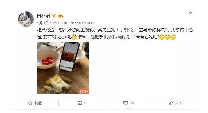 近日,王石的小娇妻田朴珺在自己的社交平台上晒出了自己的生活。田朴珺晒了一张自己吃早餐的照片,同时配文称:吃煮鸡蛋,忽然好想配上腐乳。某先生掏出手机说:“立马帮你解决”,我想估计他是打算帮我去买吧。结果,他把手机放我面前说:“看着它吃吧”。