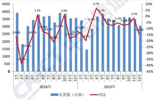 2019年12月,国产品牌手机出货量2661.3万部,同比下降17.3%,占同期手机出货量的87.4%;上市新机型30款,同比下降21.1%,占同期手机上市新机型数量的85.7%。2019年全年,国产品牌手机出货量3.52亿部,同比下降4.9%,占同期手机出货量的90.7%;上市新机型506款,同比下降27.2%,占同期手机上市新机型数量的88.3%。
