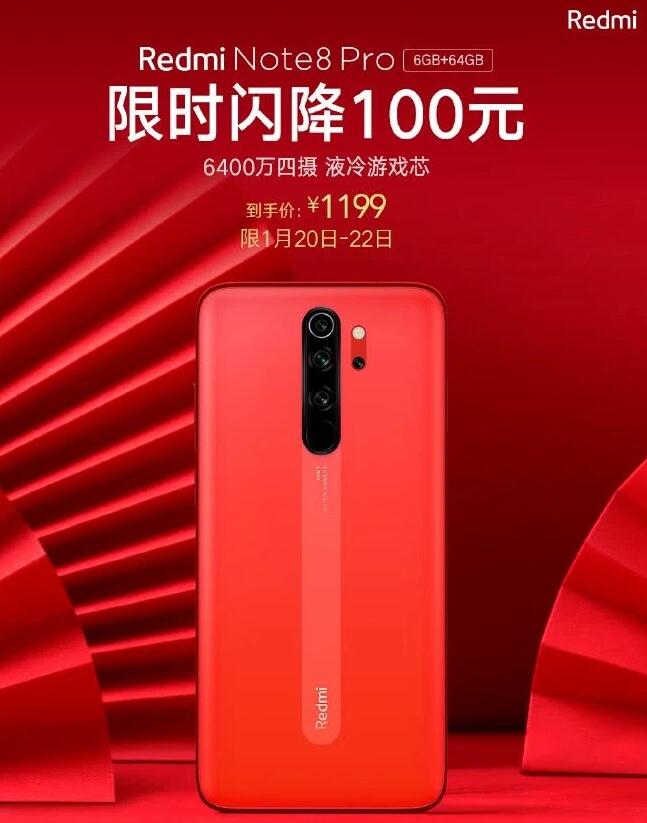 1月20日消息,小米宣布RedmiNote8Pro6GB+64GB限时闪降100元,现在入手只要1199元,仅限1月20日-22日。