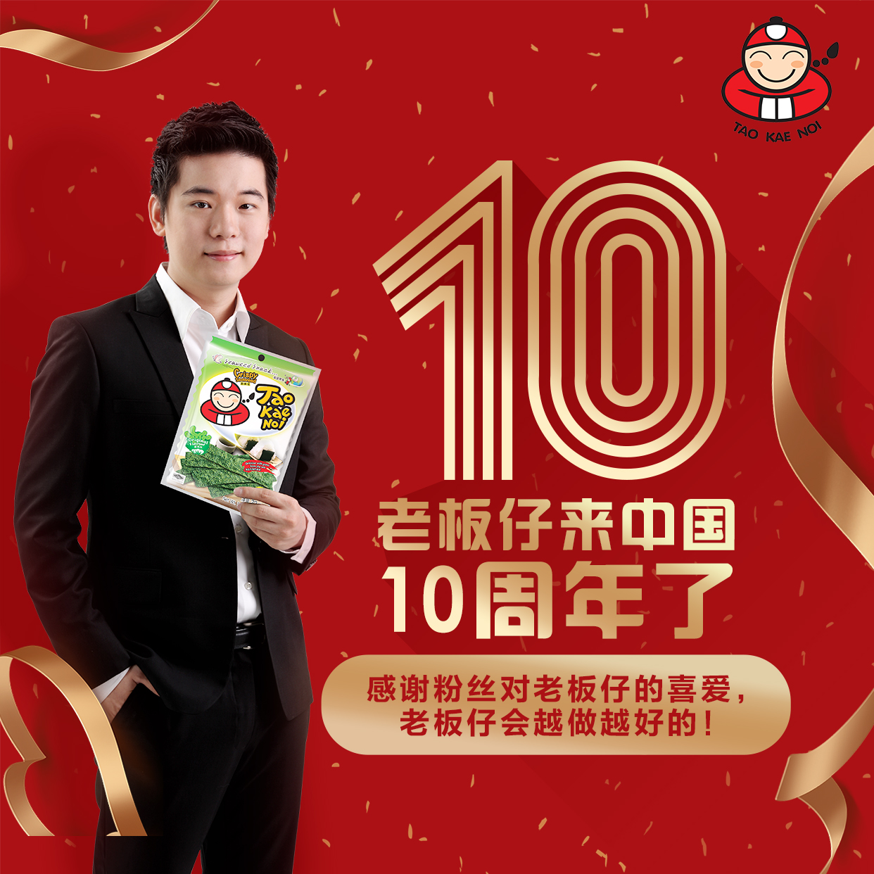 被誉为“国民海苔”并在泰国本土同类型产品中市场占有率高达80%的Taokaenoi老板仔在中国已度过10个春秋。十年,用时间来衡量,也许就只是年轮的重复。但对于泰国Taokaenoi老板仔而言,它不仅是品牌进入中国的十年,更是品牌与中国市场一起成长的十年。