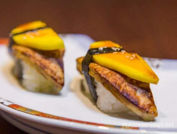 一道高颜值的芒果鹅肝寿司 让你不忍下口的美食