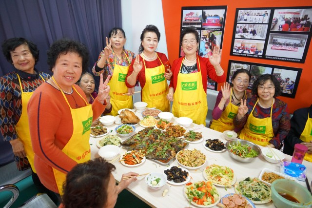 上午10时,社区居民们早早来到社区,手里拿着做饭的家伙什,擀面杖、案板、油盐酱醋、还有在家烹制的菜肴。大家围坐在大桌子旁,各显身手包饺子、准备菜肴。今年73岁的王金花老人围在炒锅前,准备现场炒菜。“我家住得稍远一点,这些菜要在家炒好,端过来就凉了,我准备现场炒,大家能吃到热乎的。”王金花说,她要炒制油炸小黄鱼、红烧大虾、辣子鸡丁、青菜腐竹等六道菜。包饺子的大妈们一边包饺子,还一边唱起了歌。社区里人来人往,欢笑声不断。