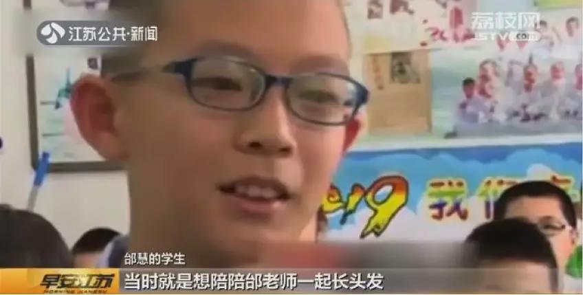 我是第一个光头男孩,当时就是想陪陪邰老师一起长头发。