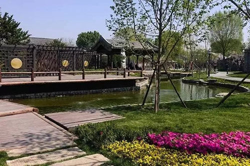 在北京市国贸桥西南的通惠河北侧,鸟语花香的公园内行人步道延绵起伏,穿梭在三季有花、四季常青的各类树木花草中……