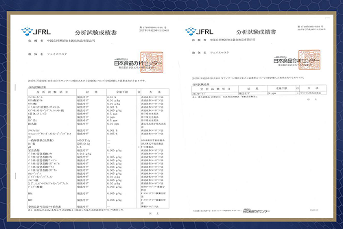 公司产品不仅全部通过中国最严格化妆品行业检测,还通过国际权威的欧盟SGS检测。其中面膜类产品,甚至通过了SGS参照食品标准进行的“急性经口毒性试验”,在中国被消费者誉为“可以吃的面膜”。
