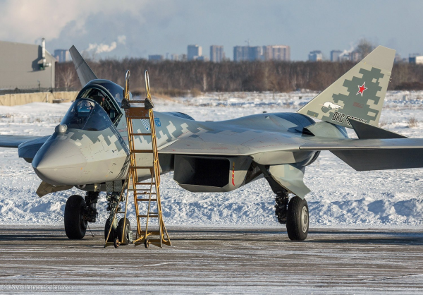 在俄929契卡洛夫国家试飞中心的首架量产型苏-57战机“蓝色一号”