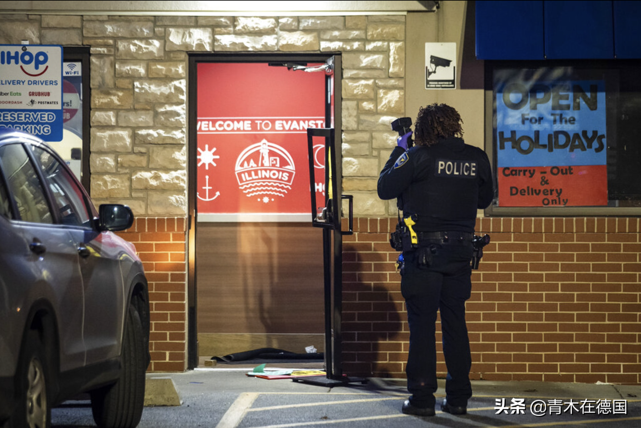 17时35分,他驾车向北行驶来到与芝加哥附近的埃文斯顿市,进入一间便利店打劫,幸好无人受伤。之后他来到街对面一间IHOP餐厅,枪伤一名女子后开车逃逸。