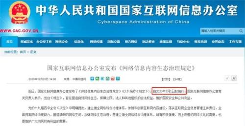 国家互联网信息办公室发布《网络信息内容生态治理规定》。根据规定,网络信息内容服务使用者和生产者、平台不得开展网络暴力、人肉搜索、深度伪造、流量造假、操纵账号等违法活动。规定自2020年3月1日起施行。