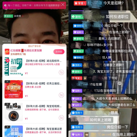 图/商家“珍珠大叔”在自己的淘宝直播间招聘
