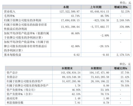 截至2019年12月31日,公司总资产为1.43亿元,同比增长37.74%;公司经营活动产生的现金流量净额为1111.42万元,比去年同期增长649.52%,公司整体财务状况得到了有效改善。