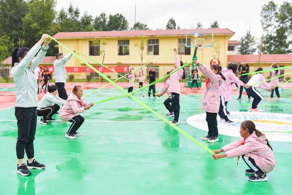 四川省凉山州布拖县拉达乡中心校的孩子们首次参加安踏体育课