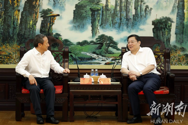 (20日下午,省委书记杜家毫在长沙与徐工集团董事长王民一行座谈。湖南日报·华声在线记者 罗新国 摄)