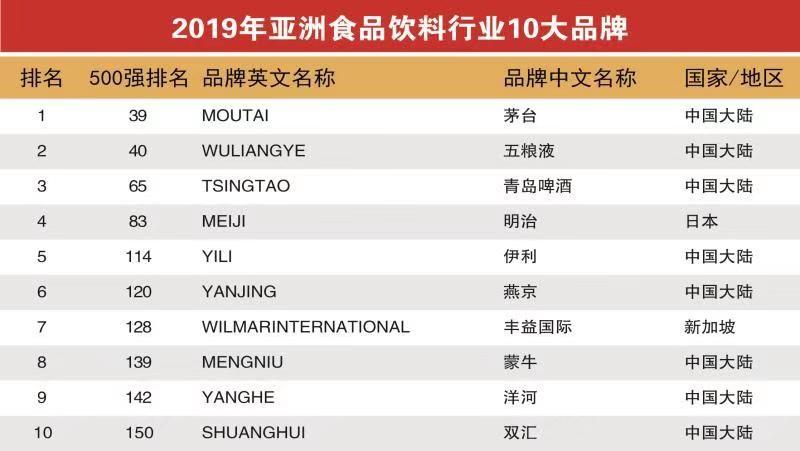 图说:2019年亚洲食品饮料行业10大品牌