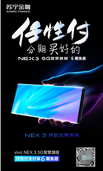 即日起至10月8日,在线下苏宁易购电器门店,使用任性付购买华为新品 Mate 30及Mate 30 Pro全系可享3期免息,购买iPad最高可享12期免息,购买iPhone 新品全系可享6期免息,购买vivo NEX 3全系可享6期免息。