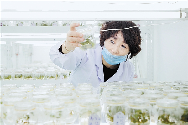 在谷百洋生物科技有限公司的组培室内,技术人员细心培育草莓种苗。