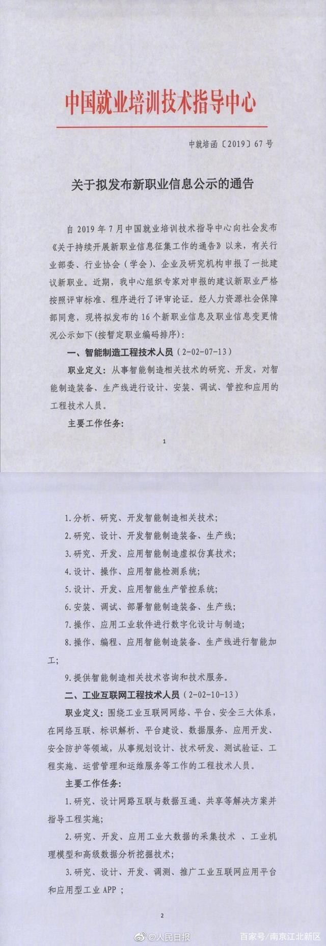 近期,中国就业培训技术指导中心组织专家对申报的建议新职业严格按照评审标准、程序进行了评审论证。经人力资源社会保障部同意,拟发布16个新职业。