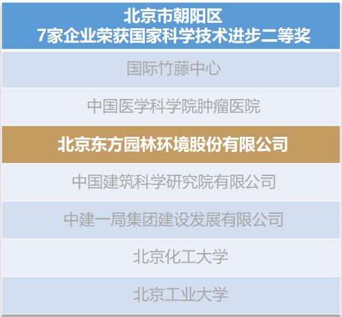 据悉,包含东方园林在内,北京市朝阳区共有7家辖区企业荣获国家科学技术进步二等奖,朝阳区政府多年大力推动企业科技创新、落实技术革新推动社会发展之路已收获成效,朝阳区科技创新之路在这一新的起点,必将迎来跨越式发展。