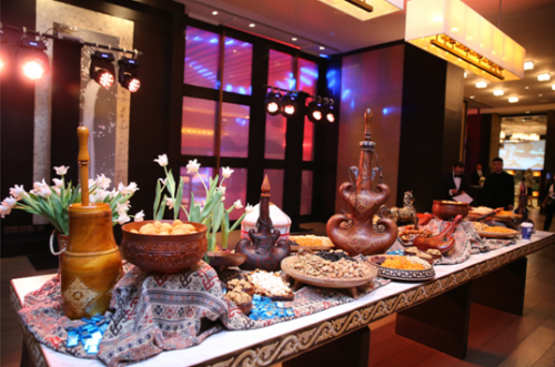 颇具哈萨克斯坦当地特色的现场装饰及食品